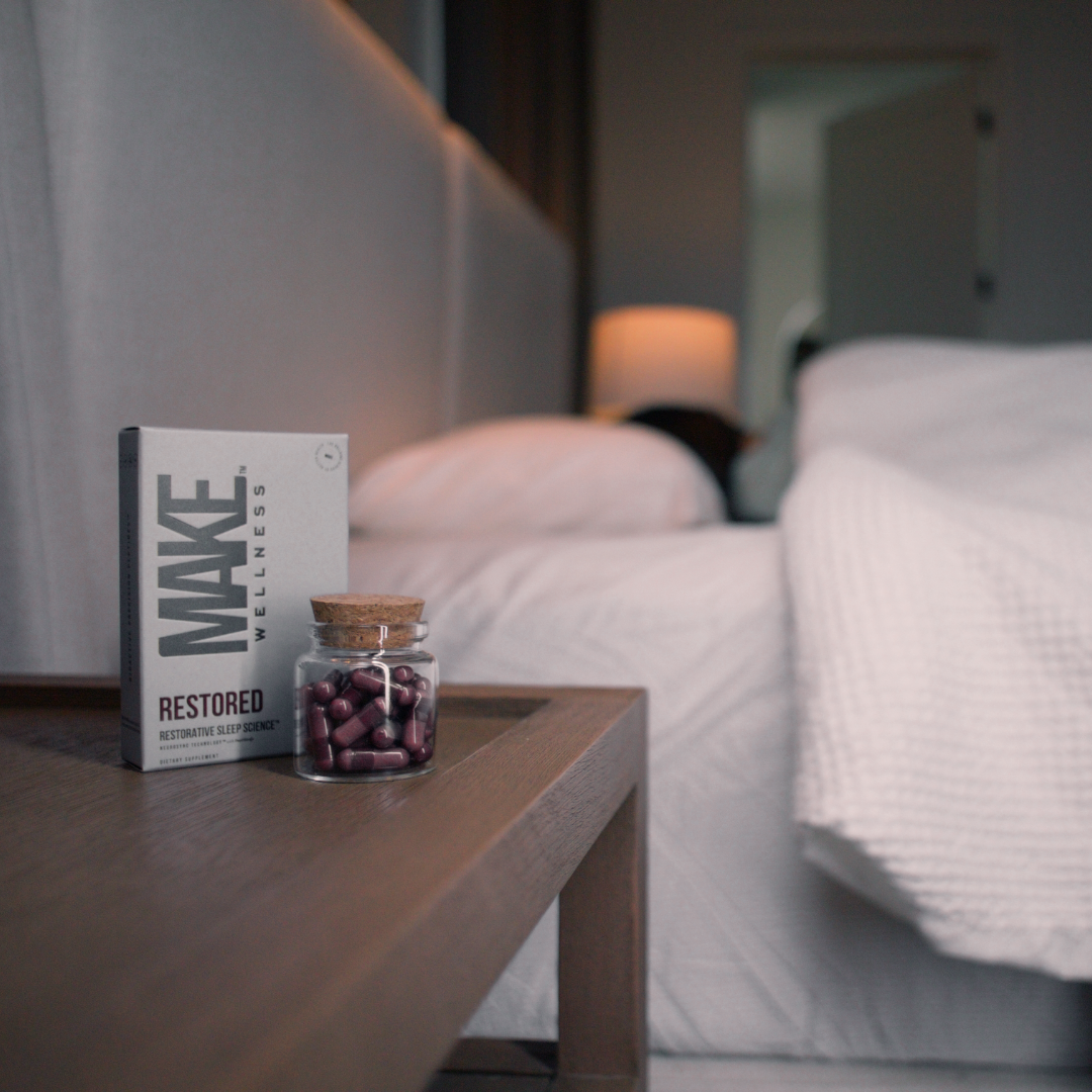 A better day starts the night before. RESTORED is a peptide-powered sleep system designed to help support your body's natural sleep rhythm and restorative sleep so you can wake up feeling like yourself again: clear, focused, ready.